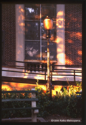 夕陽と街灯とレンガ