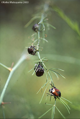こんな風にJapanese beetlesがいっぱい。 最初は日本から輸入された何かにくっついて来てしまったらしく とても悲しいエネルギーをもっていたという。 ここPerelandraのco-creativeな環境の中で かなり癒されて、今ではノビノビと暮らしている。