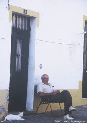 Evoraではおじさんもこうやって玄関先でひなたぼっこ Evoraの人はみんな気さくで カメラをもって撮っていい?とジェスチャすると笑ってくれる