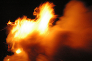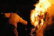 白装束の行者さんたちが水をかけるとさらに炎があがっている感じ