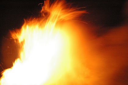 護摩焚きの様子。炎はまるで生き物!
